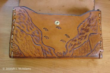 The purpose of this section is to show my leather creation that I have created through the years. I have Tooled, molded, carved, dyed and sewn leather and cut all types of hides all by hand through the years. These pages chronical some of the work of my years working with leather.